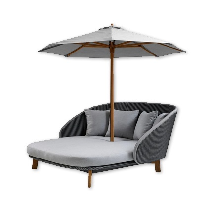 Unsere bequemen Double-Daybeds befinden sich oberhalb des Wasserfalls mit Blick auf den Außenbereich.